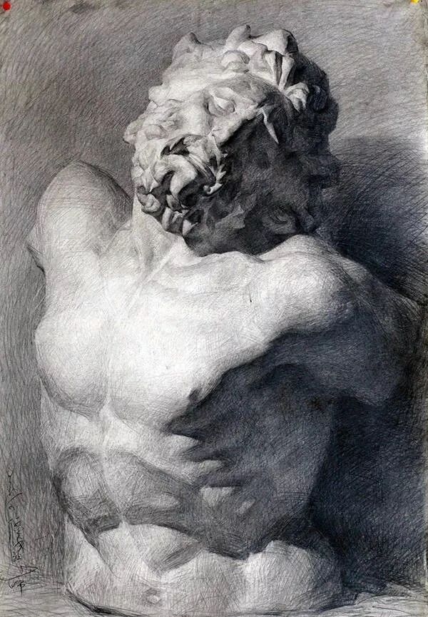 6、解剖建议:背过肌肉的起始、大小、方向等对素描有很大帮助。