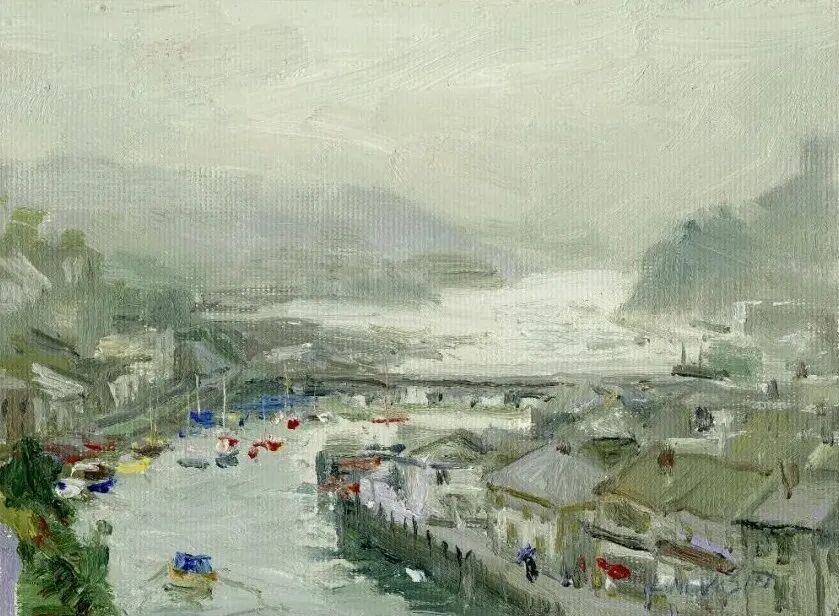 小城细雨 布面油画 12x16cm 1990年左右