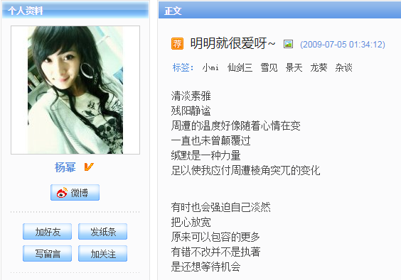 杨幂早年的博客日记。