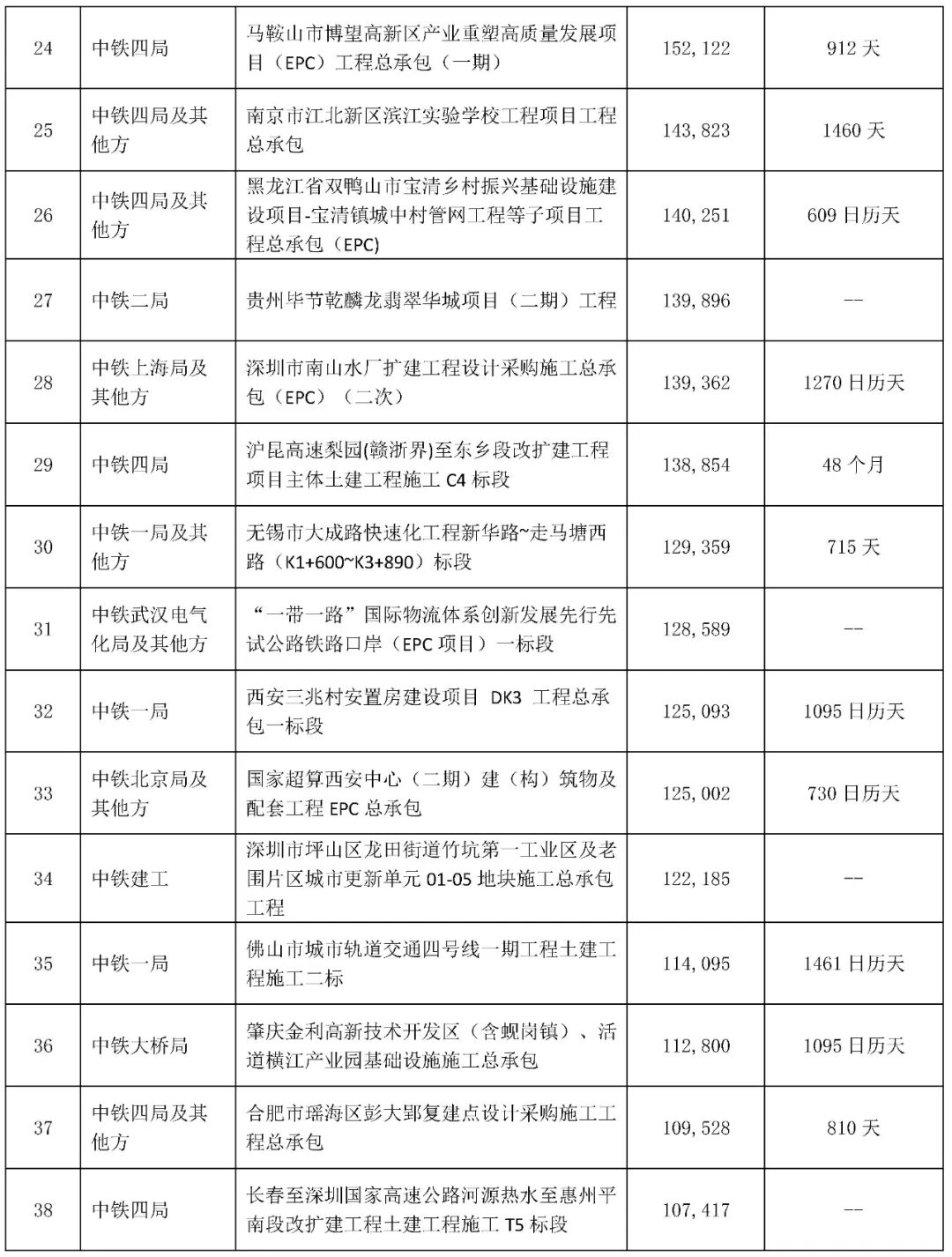 注:中铁一至五局为原铁道部工程局,为综合局;中铁六至十局为2004年配合铁道部主辅分离新组建的,为综合局;大桥局、电化局、隧道集团、航空港、港航局,为专业局;但目前也慢慢走向综合化。