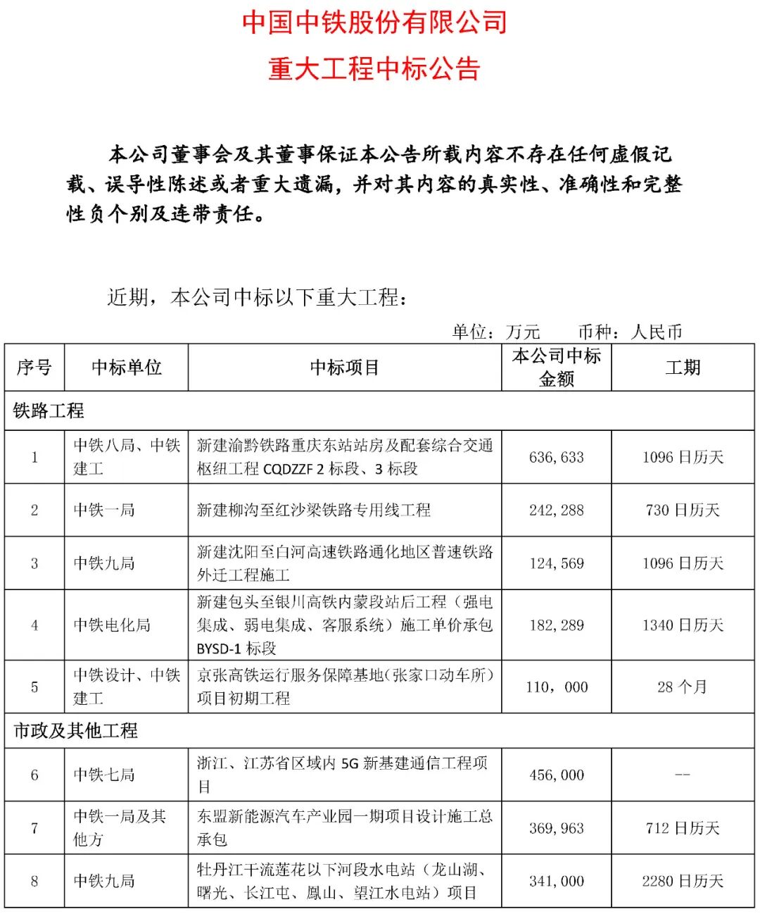来源:中国中铁、辽宁省交通运输厅、网络汇总