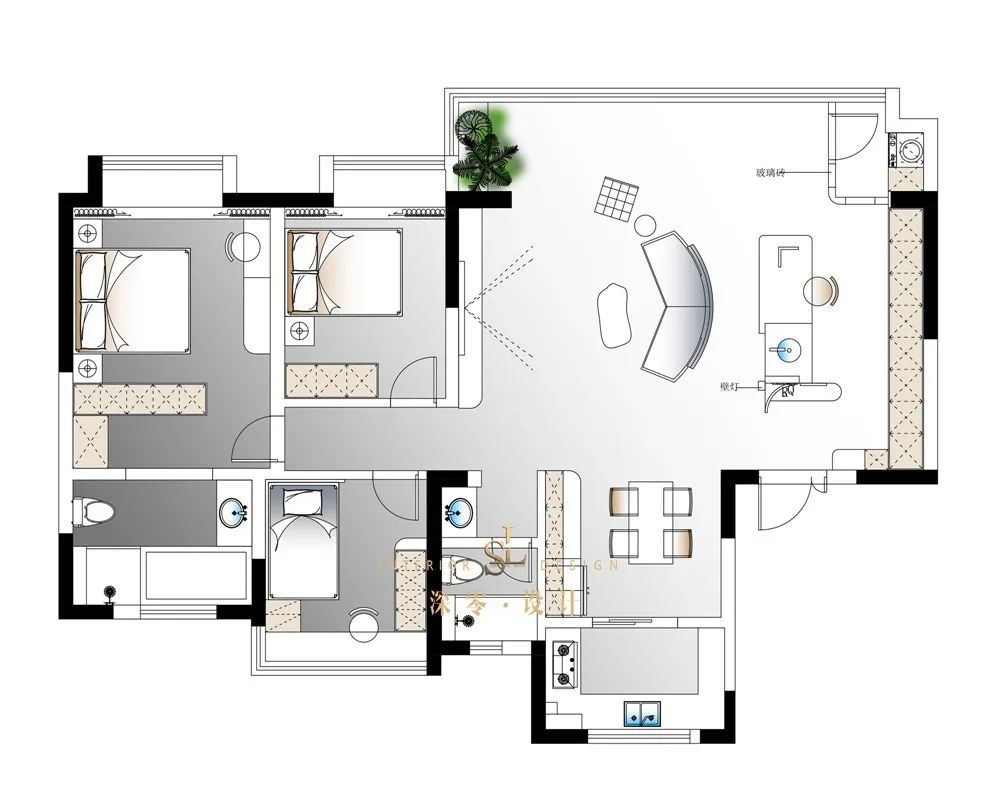 ▼下面这户人家的装修,就是一个很好的例子,对阳台的利用也相当到位: