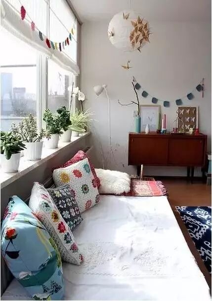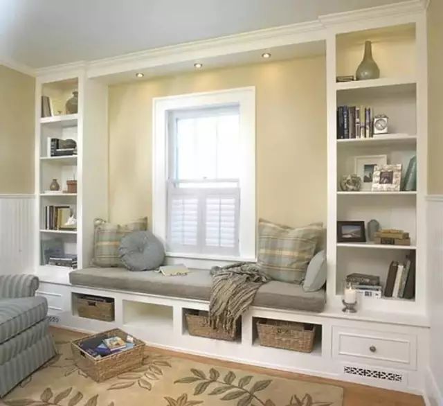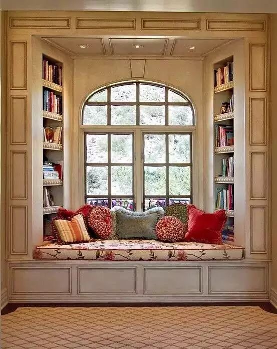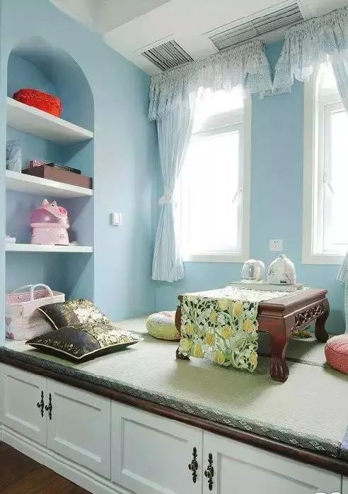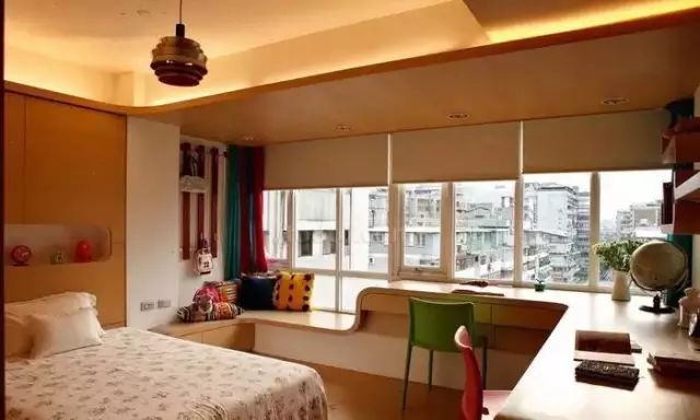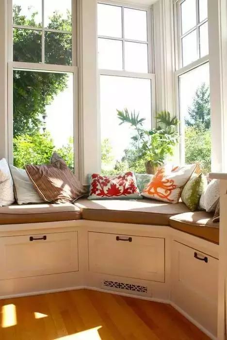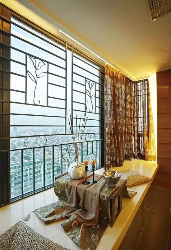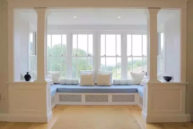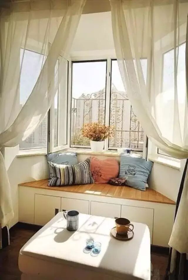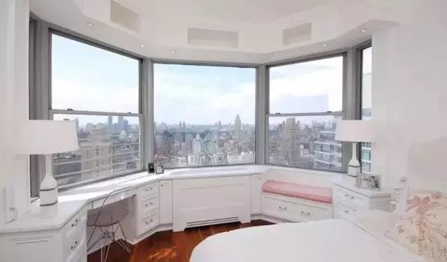 飘窗,从名字不难看出,就是飘出的窗子。一般的飘窗可以呈矩形或梯形,从室内向室外凸起。飘窗的三面都装有玻璃,窗台的高度比起一般的窗户较低。这样的设计既有利于进行大面积的玻璃采光,又保留了宽敞的窗台,使得室内空间在视觉上得以延伸。使人们有了更广阔的视野,更赋予生活以浪漫温馨的色彩。