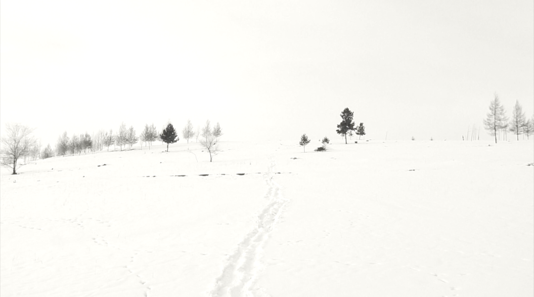 《白驹过隙》是我在家乡呼伦贝尔回民墓地的山上创作的行为记录。我小时候是被奶奶带大的,我跟她感情很深。她去世很久了,我时隔多年回老家去山上看她,冬天的大雪覆盖着空旷的坟地,寒冷让那里的一切都那么干净,视野中那座山也是平面的,天空大地都是白色的。我没有想着创作的事情,只是想记录一下我在被雪覆盖的坟地上寻找奶奶在的位置。回去查看素材的时候看见自己在影像中渐渐消失,突然感受到了一些个人成长在生命中留下的某些痕迹。