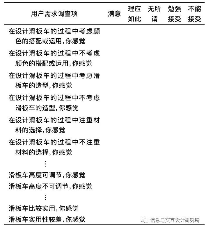 表1 传统Kano模型问卷调查表