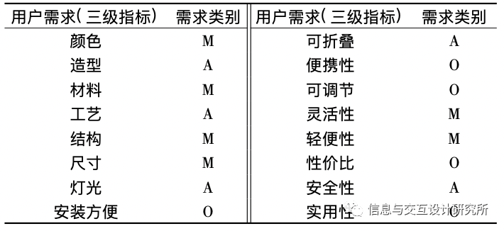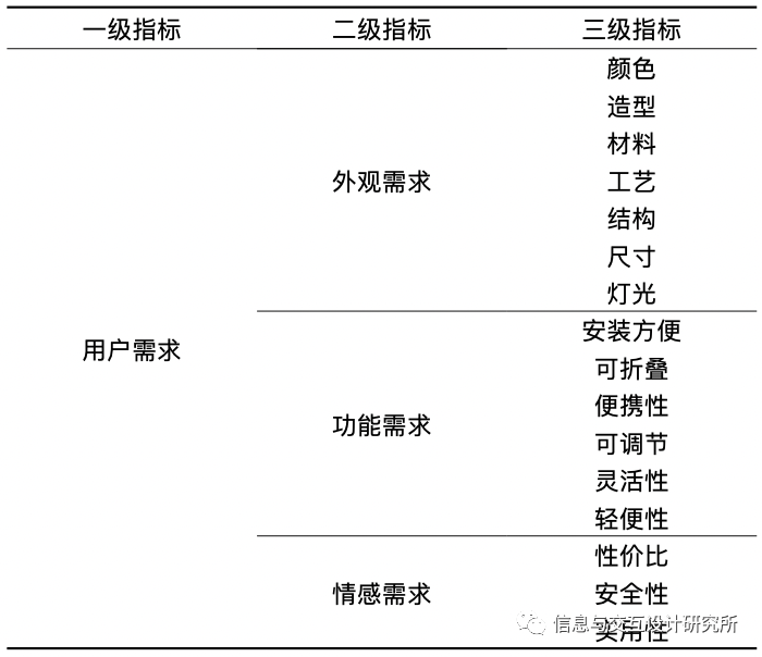 表6 用户需求要素层次模型