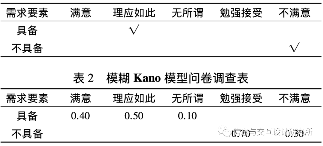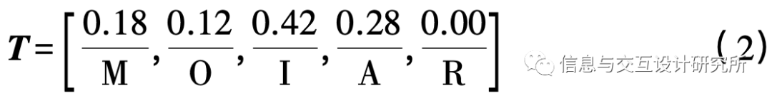 2)将得到的交互矩阵Z对照Kano模型需求分类评估表(即表3) ,得出该需求的隶属度向量T为: