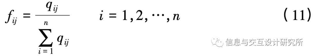 式( 10)中,中间变量Fij;为标准化矩阵Q归一化后的元素,即: