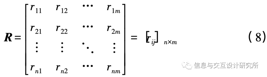 假设有n个评价等级和m个评价指标,则基于熵权法的判断矩阵R为: