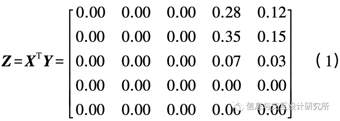 1)以模糊Kano模型问卷调查表为例,针对某一需求要素,如若具备该项需求的矩阵为X=( 0.40,0.50,0.10, 0.00, 0.00) ,如若不具备该项需求的矩阵为Y=( 0.00, 0.00, 0.00, 0.70, 0.30) ,则生成的交互矩阵Z为: