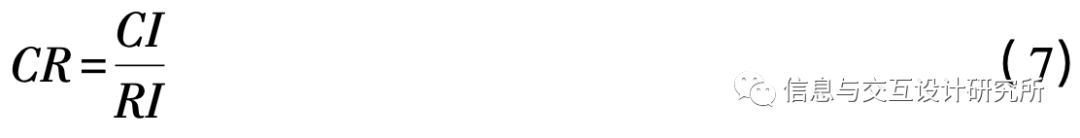 式中: CR为一致性比率; RI为随机一致性指标。