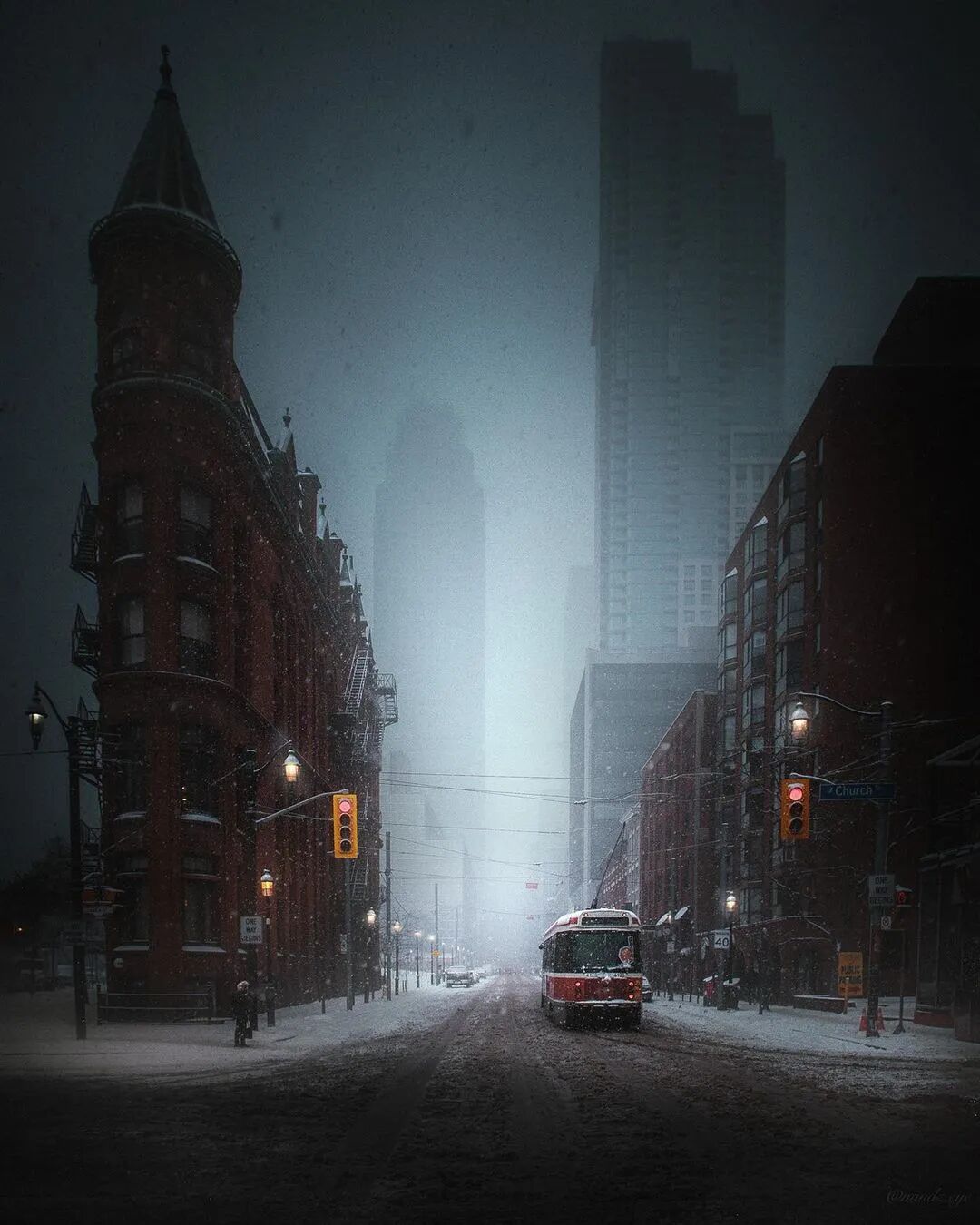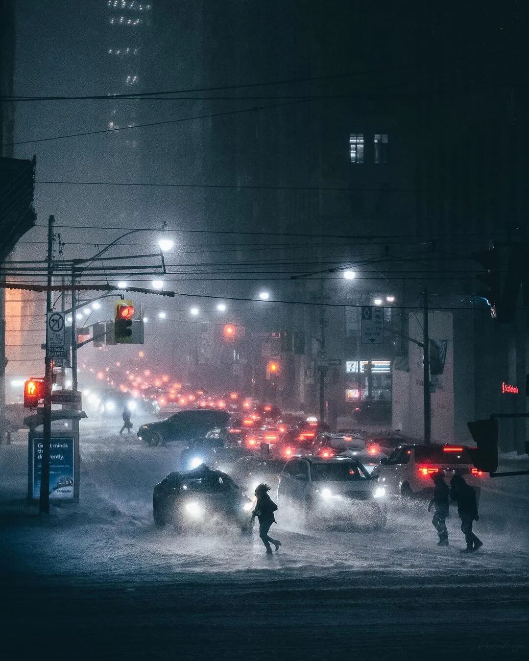 他们擅长寻找独特的视角和瞬间,利用霾、雨、雪、夜的特殊天气和光线,同时辅以个性化的后期色调,让他们的城市街景照片,呈现出了让人印象深刻的情绪和效果。