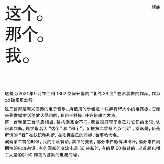 颜峻,声音工作者,文字工作者。1973年出生于兰州。住在北京。撒把芥末创办者。曾经是地下摇滚乐评人。现在使用噪音、身体、田野录音、录像等进行创作。是FEN、茶博士、大鬼众乐队成员。他的网站:yanjun.org