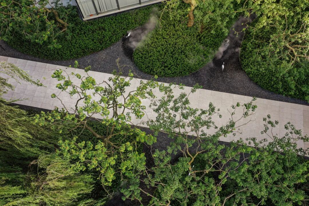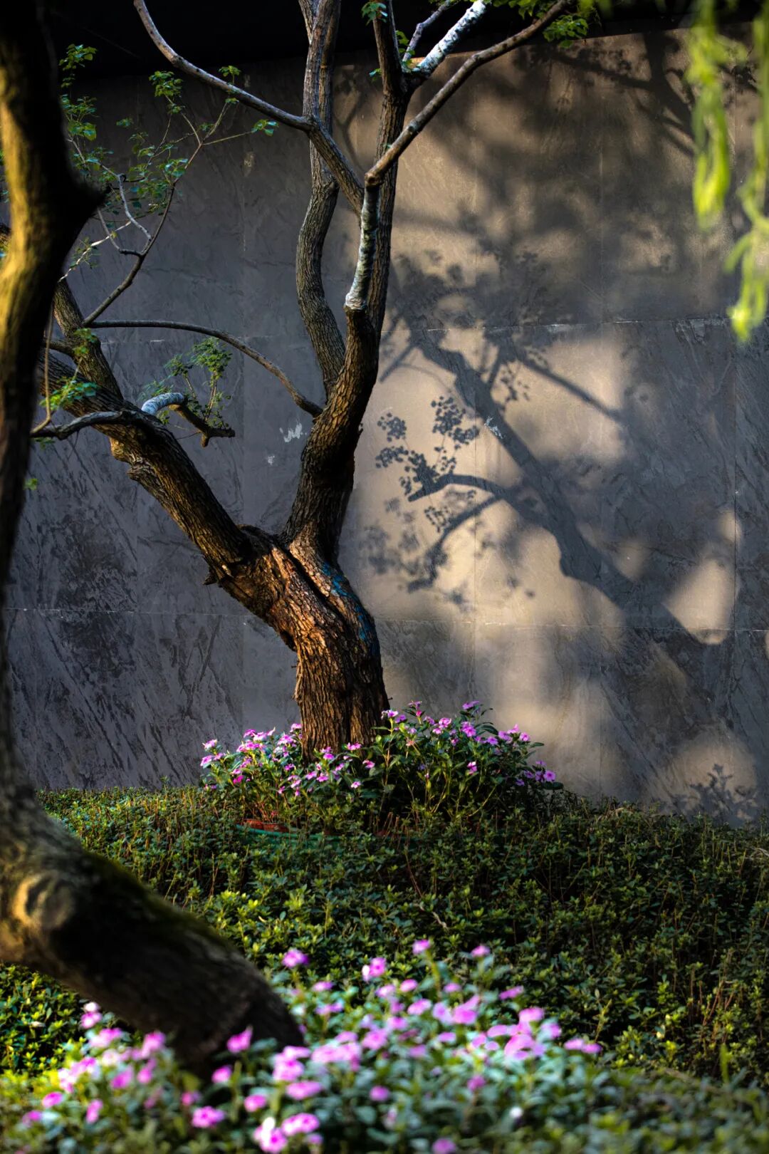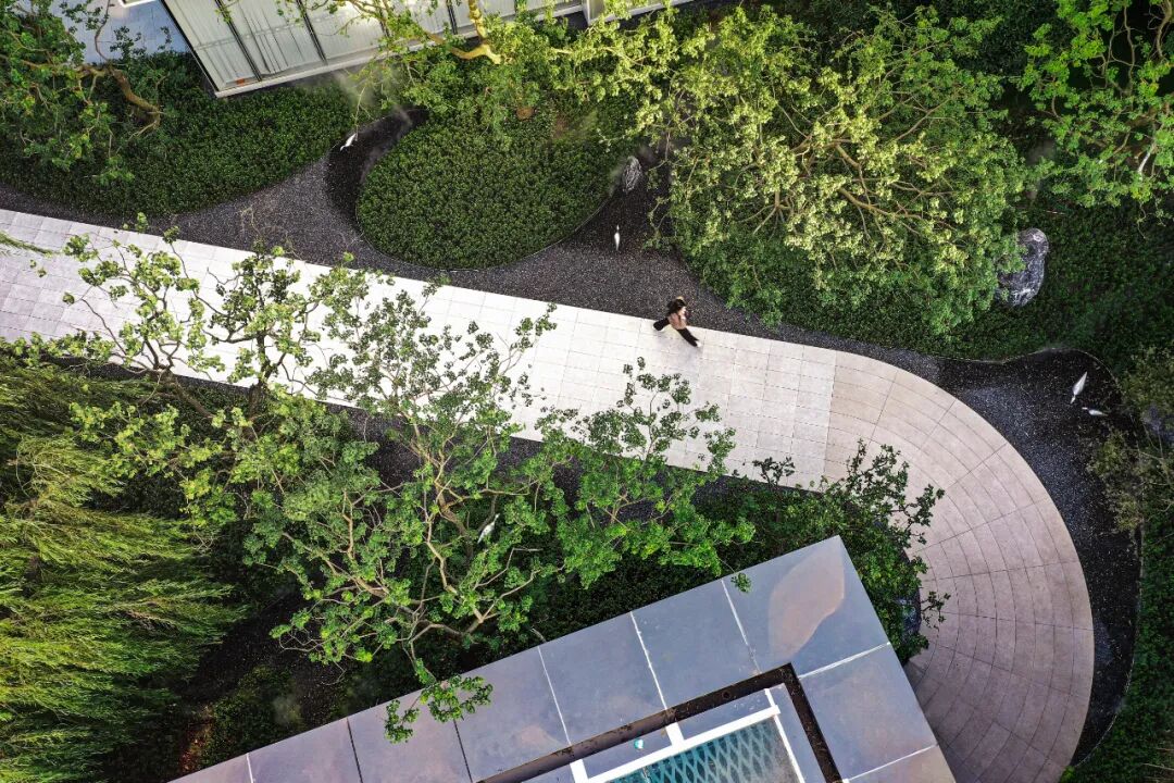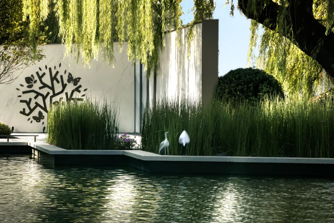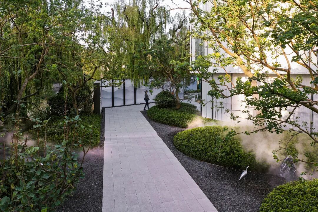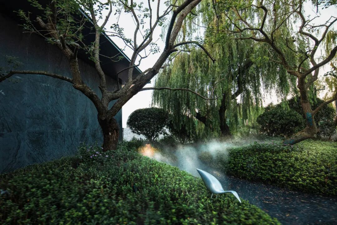苍劲的树与鲜嫩的花交融,展示的都是蓬勃的生命力。通过现代设计手法将山水意境融入景观当中。