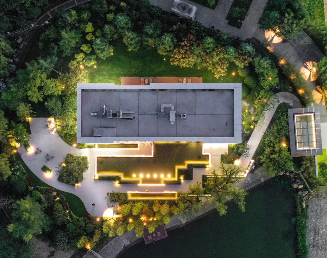 值得一提的是,这三颗大柳树是从项目原址保留的,结合树的位置与光影的关系,设计营造出一种意境:饱经风霜的大树,静立于山巅之上,笑看日升月落。