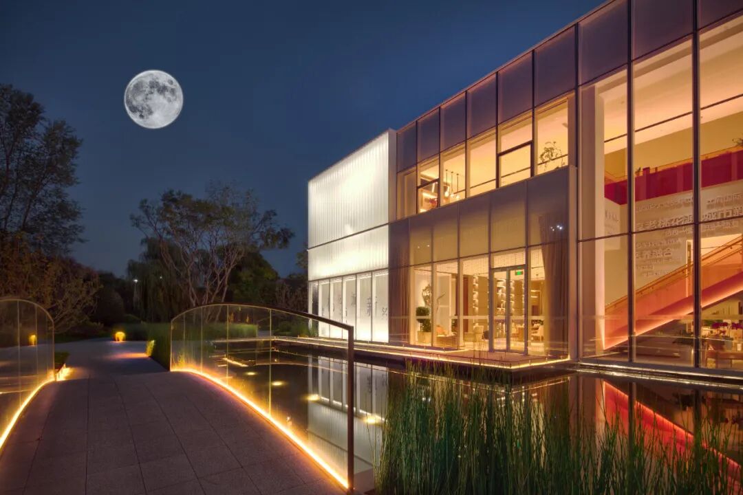 著名作家郑振铎曾写道“海面上时明时暗的灯光,如同乘舟于海上”。设计就将这个意境融汇于此处。将海面上波光潋滟,海与月色交相呼应的诗意景象通过水景、虹桥、以及倒映在水中的树影、月影来表现。