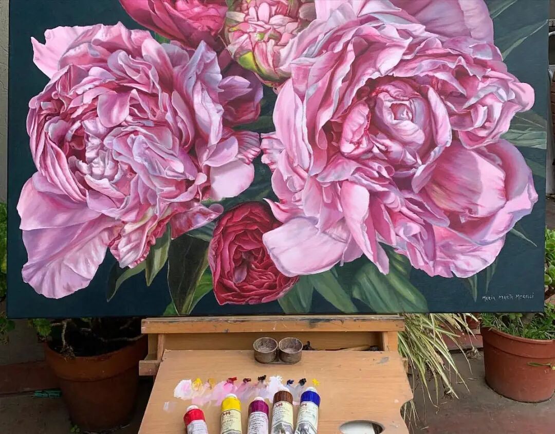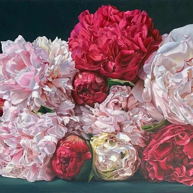但是,来自布宜诺斯艾利斯的超写实艺术家玛丽亚·玛尔塔·莫雷利,却画出了牡丹怒放的生命感,一大簇一大簇地绽放着,让人感受到了它与生俱来的高贵感。这位女画家是一个环境主义者,她一直致力于用油画来表现大自然的美丽,在她看来,花朵代表着青春、绚丽、激情、爱情和美丽,同时也代表着生命的无止境。