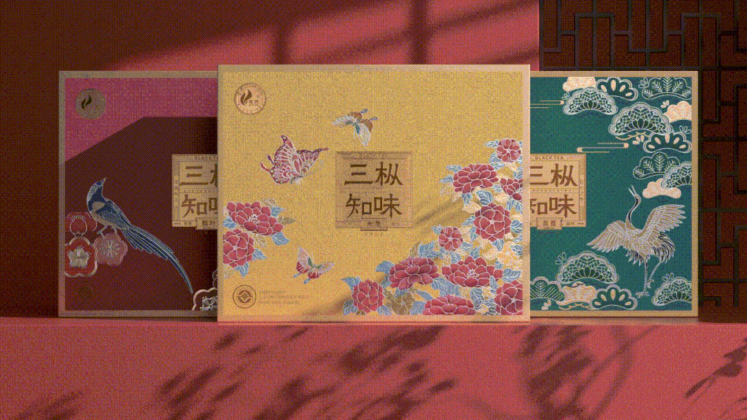 以三种传统色渲染三款礼盒