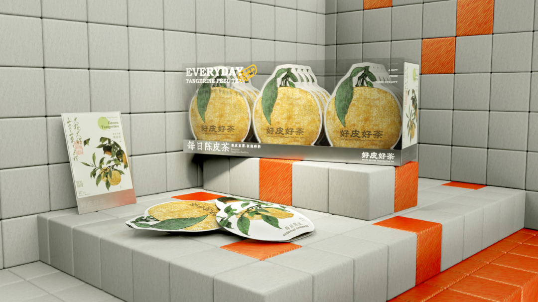 外包装参考柑橘造型,引出产品的陈皮属性