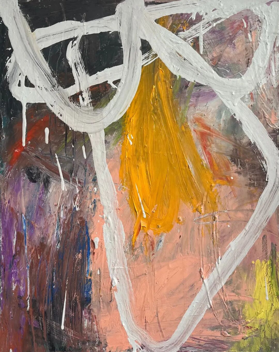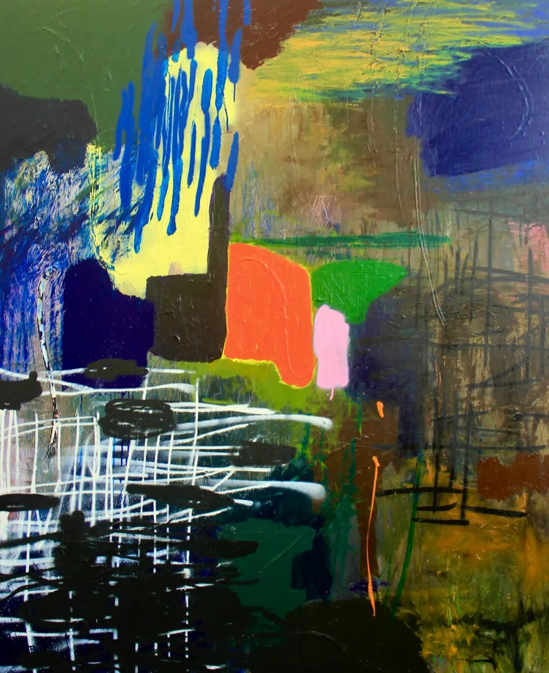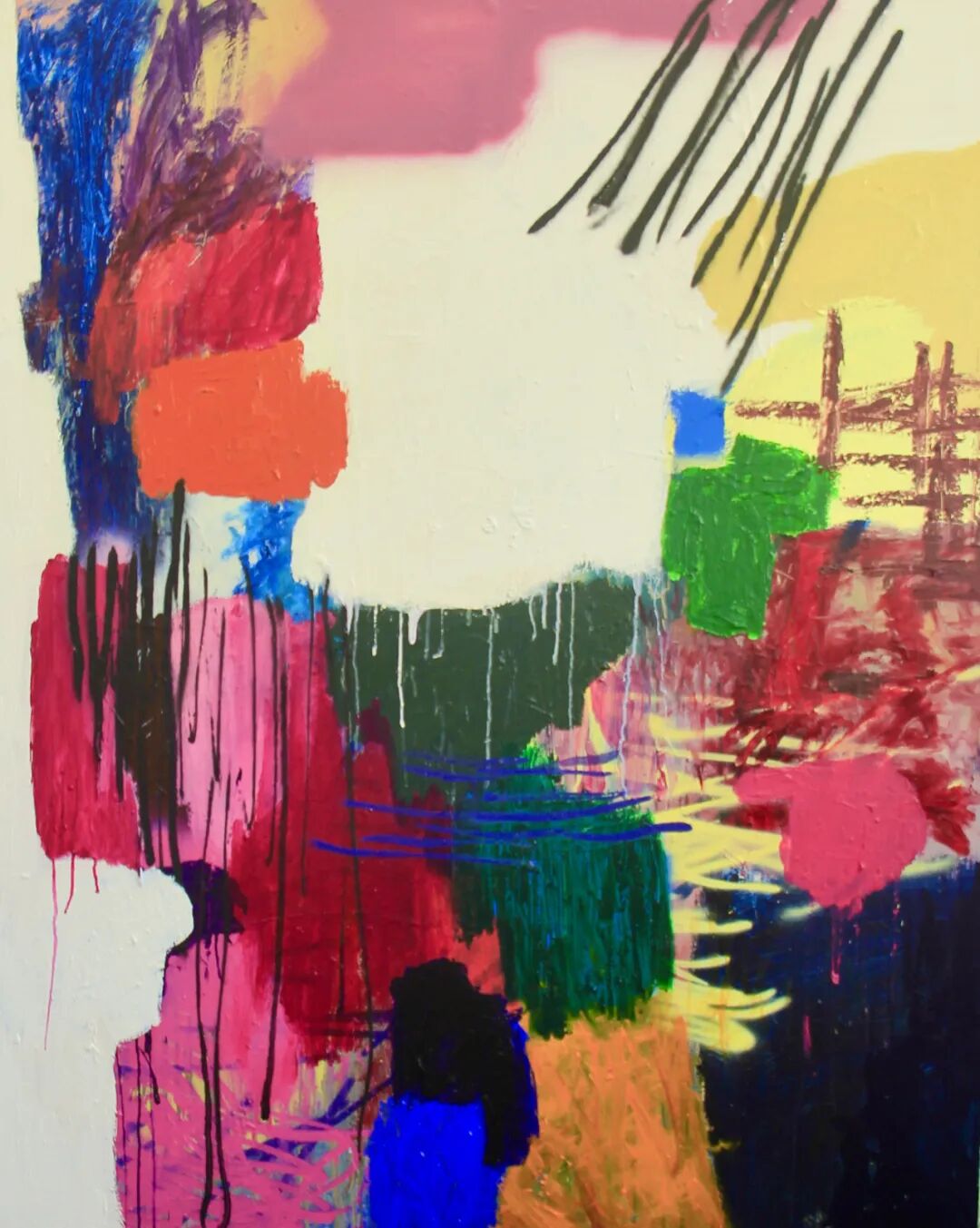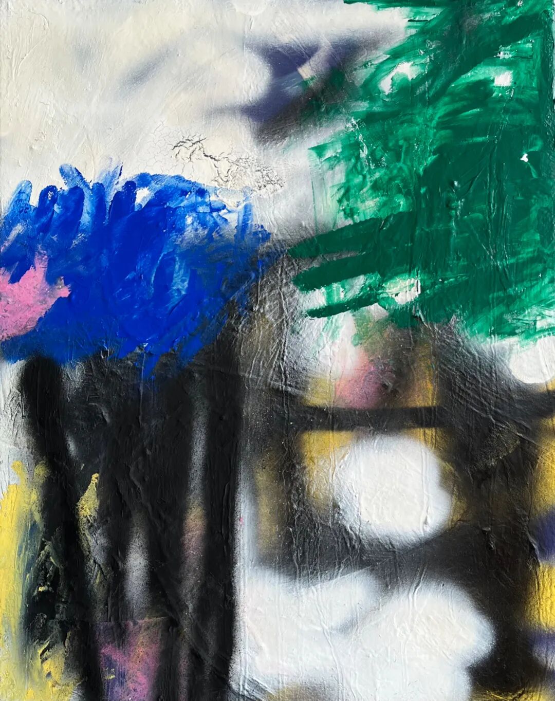 自学校毕业起,我就开始尝试往抽象绘画的范畴去延伸自己的作品,尝试过在宣纸上直接丙烯上色,布面色块拼贴……等等创作手段,也是一个生长的过程。
