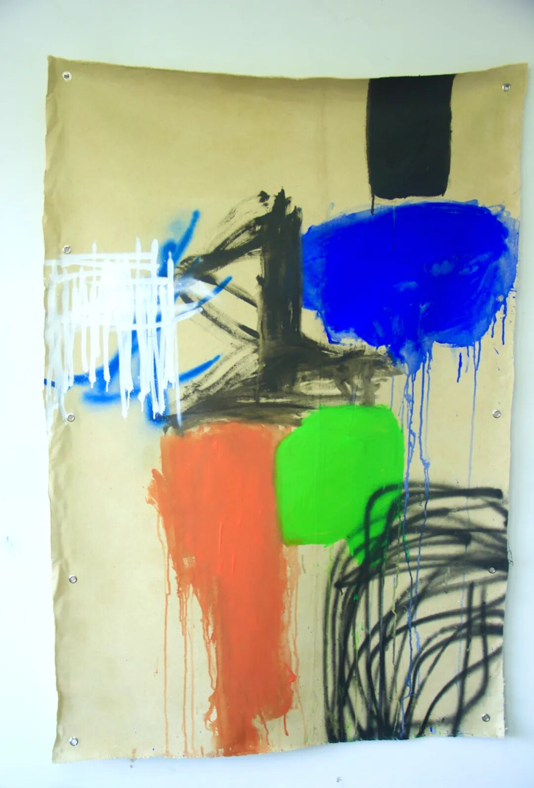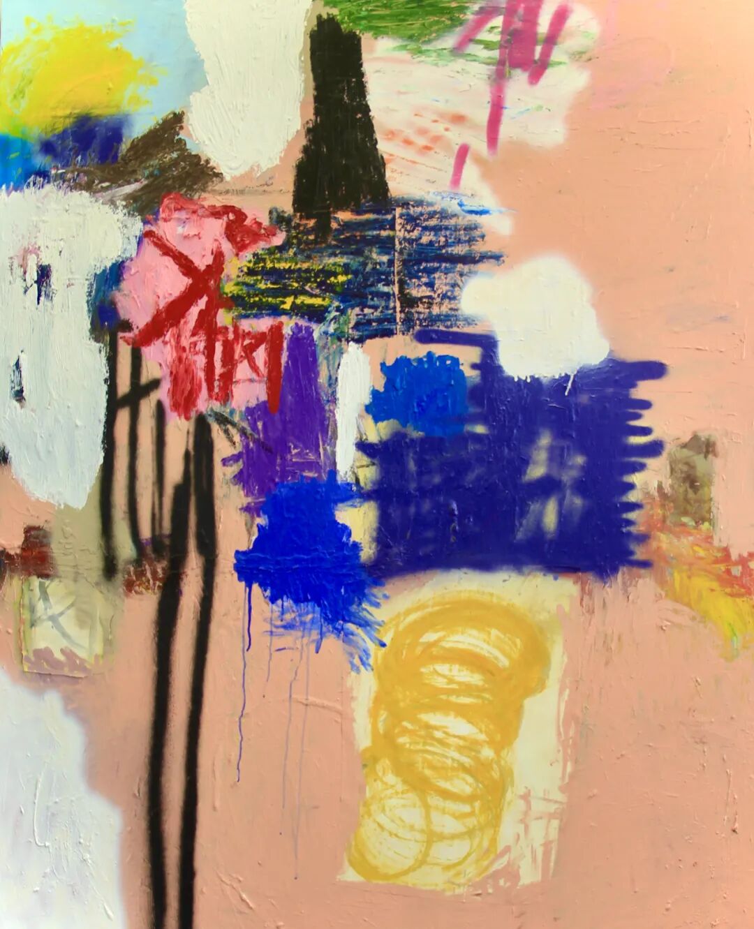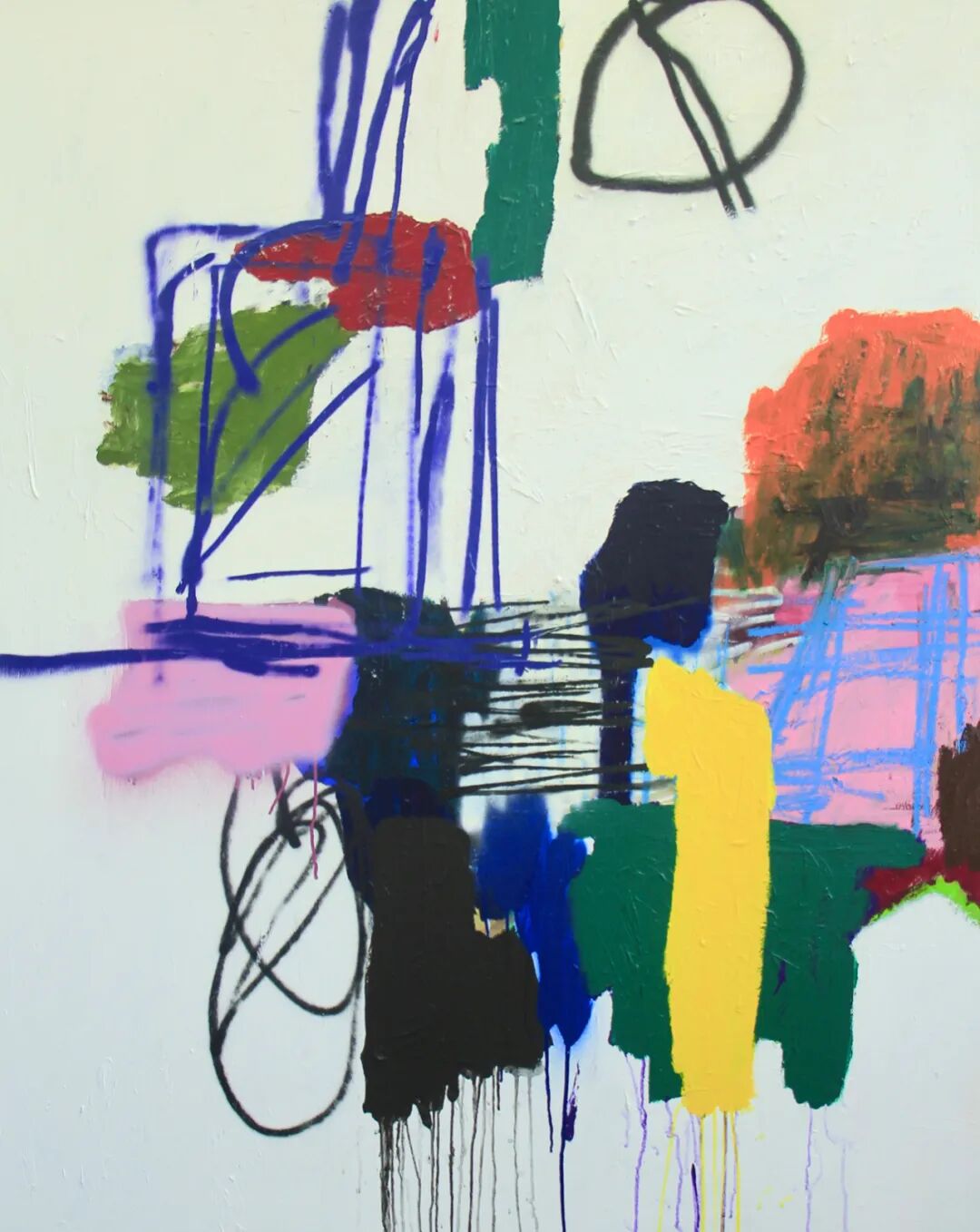 自学校毕业起,我就开始尝试往抽象绘画的范畴去延伸自己的作品,尝试过在宣纸上直接丙烯上色,布面色块拼贴……等等创作手段,也是一个生长的过程。