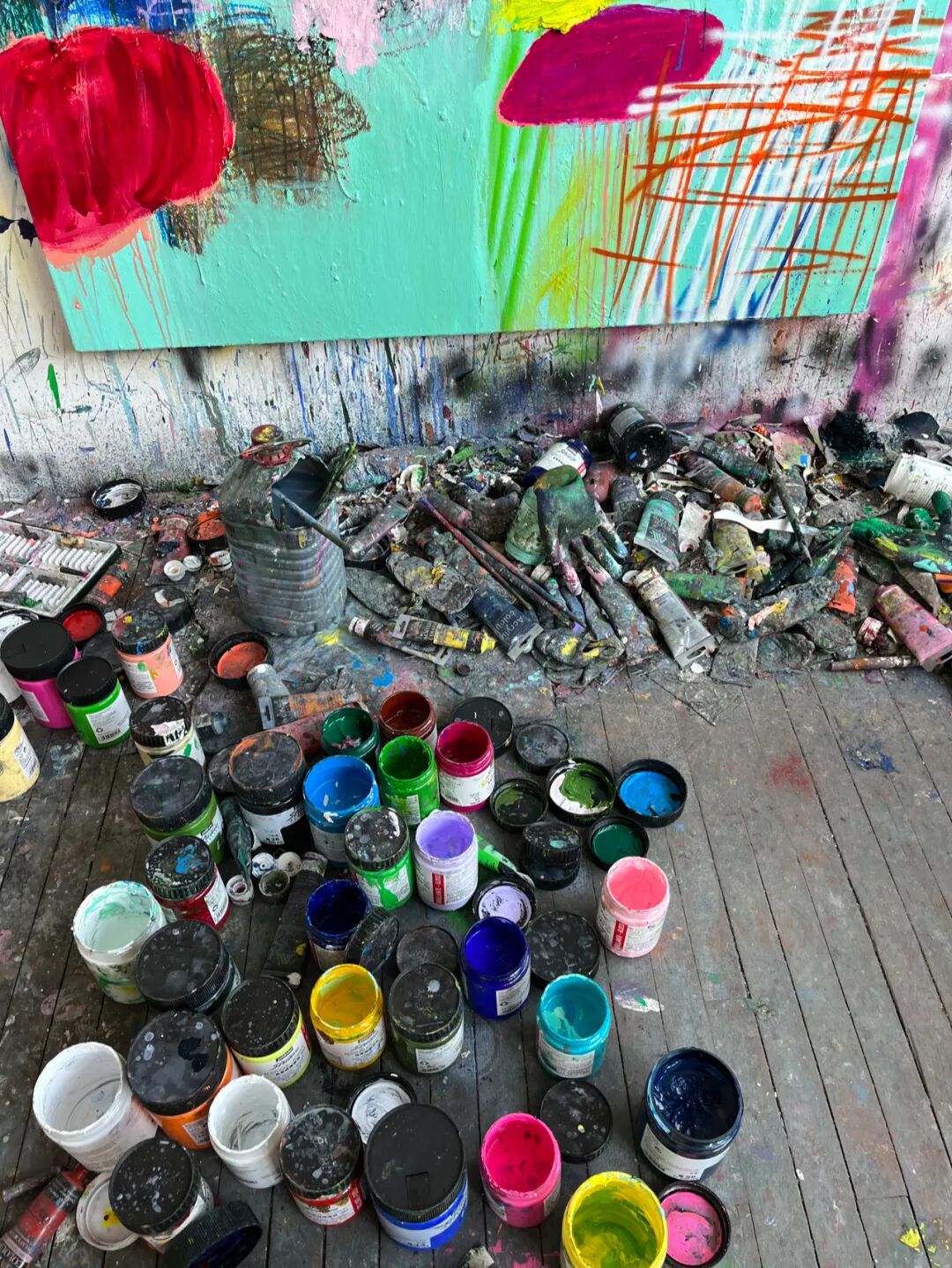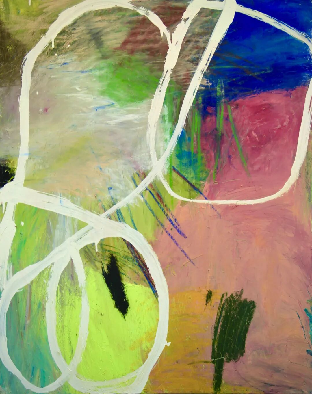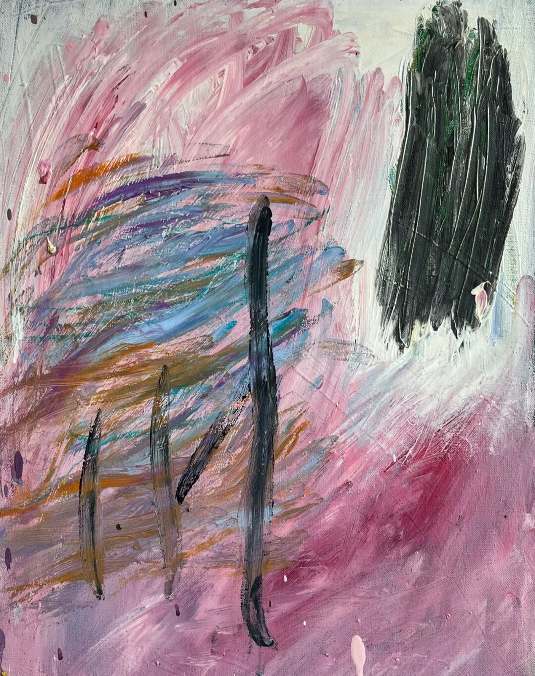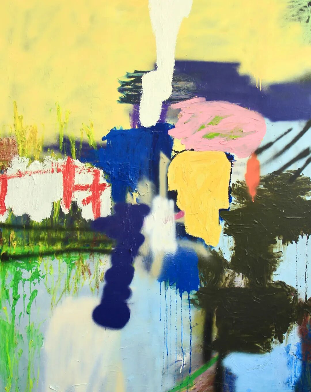 自学校毕业起,我就开始尝试往抽象绘画的范畴去延伸自己的作品,尝试过在宣纸上直接丙烯上色,布面色块拼贴……等等创作手段,也是一个生长的过程。