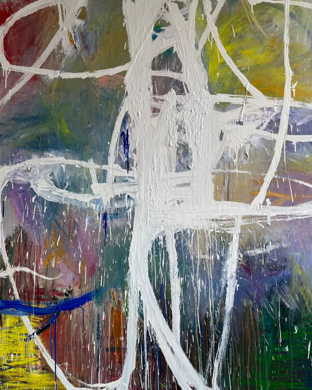 现在的作品是一种线条的表现形式,线条在作品中代表着骨骼,它让作品有了力量。这种力量是自我本身的一个诉说的出口,也是一个很具体的表现,在抽象与具象之间游走。