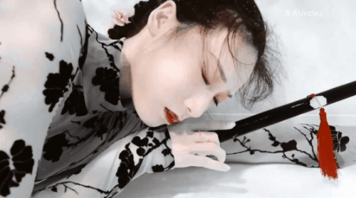 一举一动伴随着裙摆飘飘,犹如水墨晕染,粉色笔尖尤似水中莲花,古韵十足。