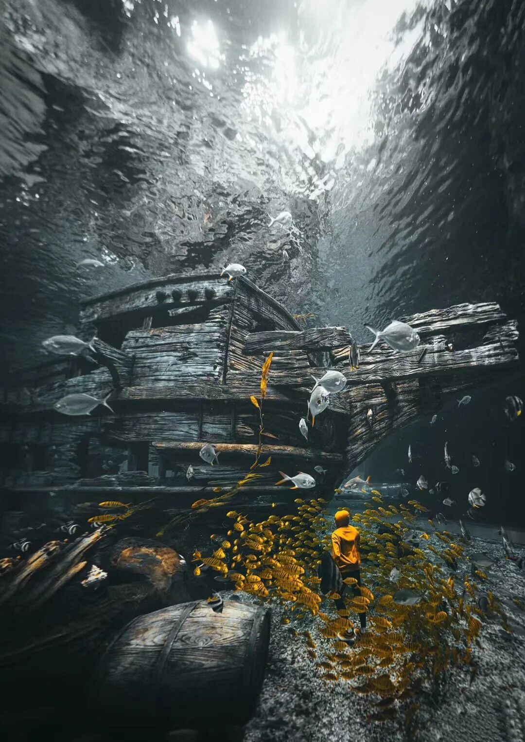 人鱼共舞,流动的轻灵感,恰似鲲在天际遨游一般的自在,梦幻唯美。