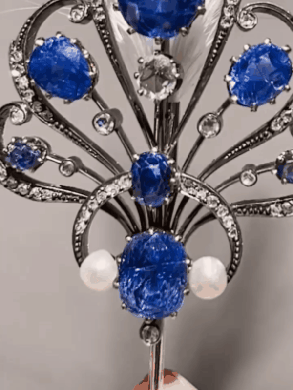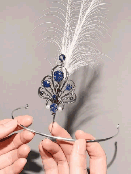 雅作中经典的aigrette羽毛样式镶以大颗天然蓝宝石和星光般的钻石,既有柔美浪漫之风,又不失优雅摩登之美,不仅是独特的珠宝艺术,婉约大方的造型更能够作为重要纪念之物,珍藏价值极高。