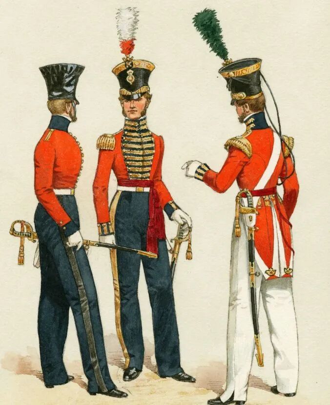 左:18世纪末,一位英国少将的帽檐上装饰着以钻石及羽毛打造的头饰 / 右:羽毛成为欧洲军队服饰中象征等级的标志