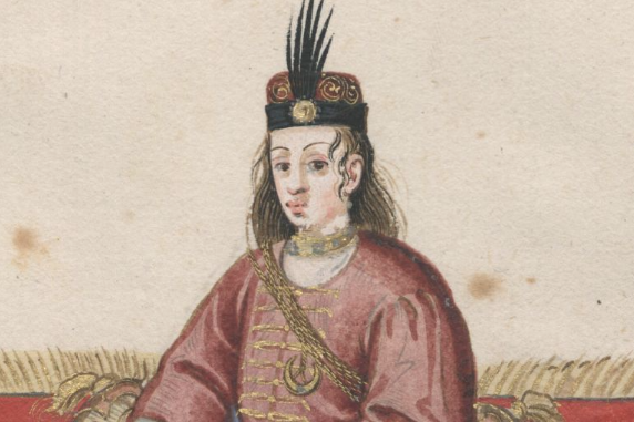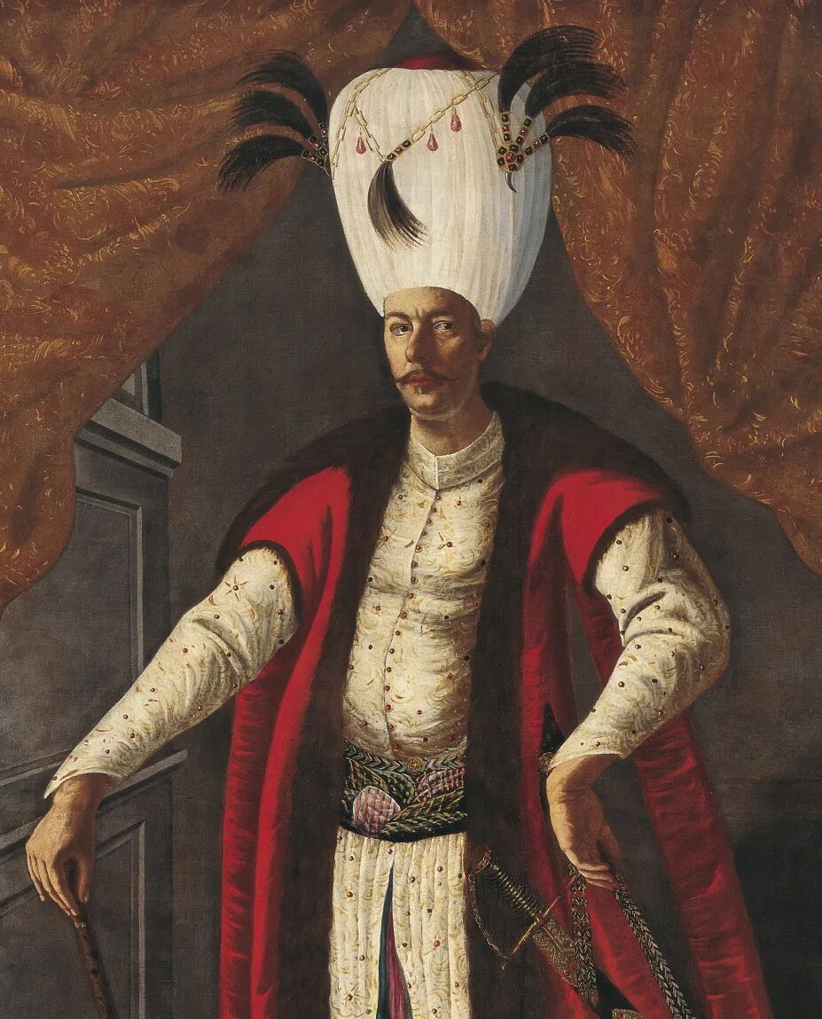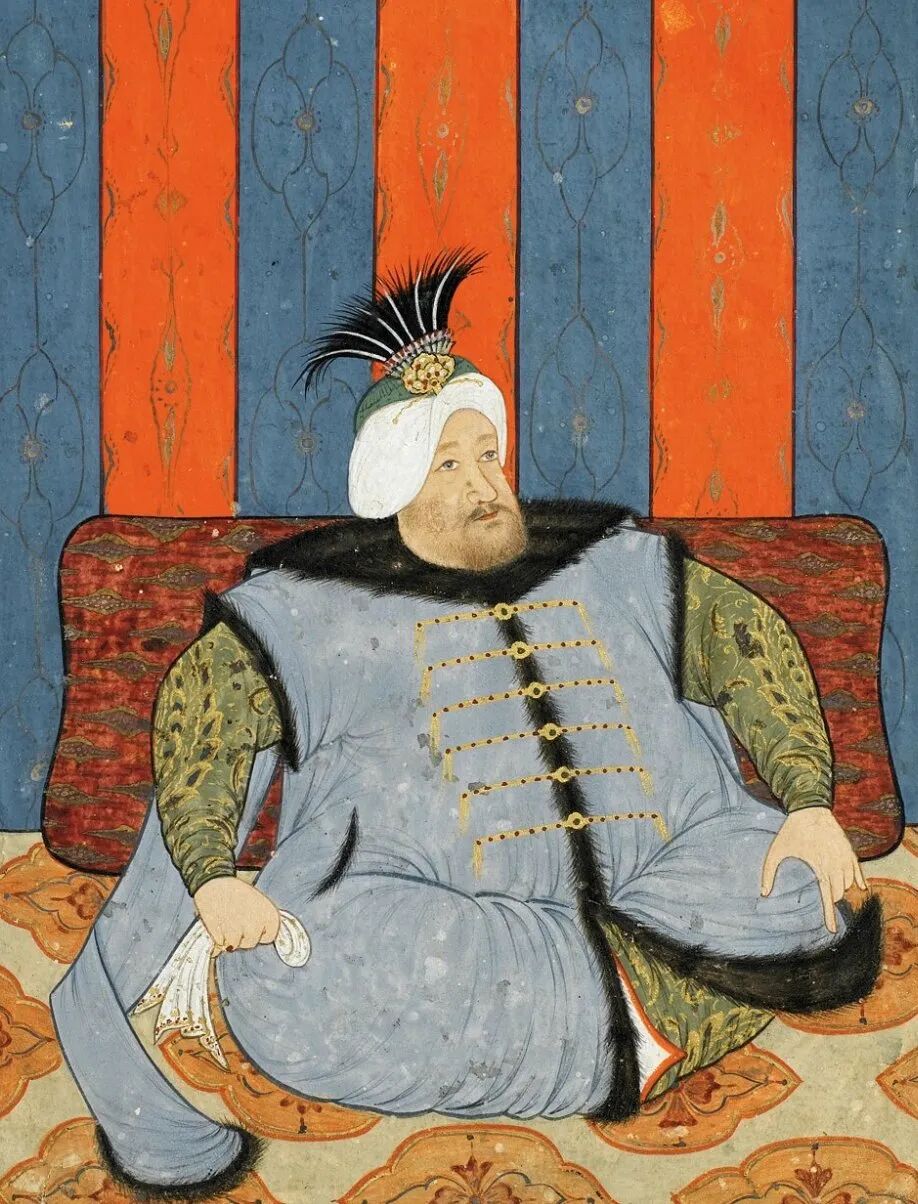上:一位16世纪的土耳其宫廷女子佩戴着黑羽头饰/