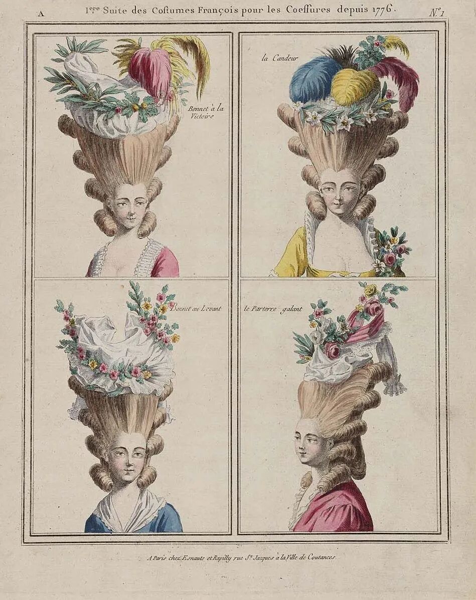 在以繁美著称的洛可可时代,女性将羽毛运用到极致,各种色彩搭配钻石珍珠,将假发华丽包裹