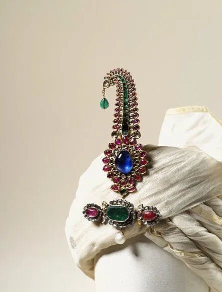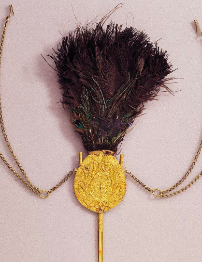 下:16世纪黄金嵌孔雀羽头巾装饰/土耳其和伊斯兰艺术博物