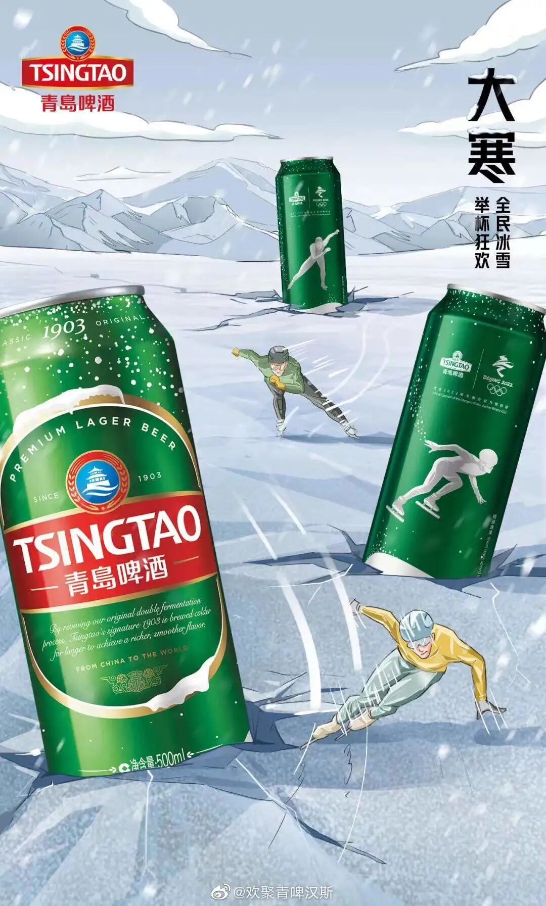 青岛啤酒也量身定制了一款「冬奥冰雪罐」