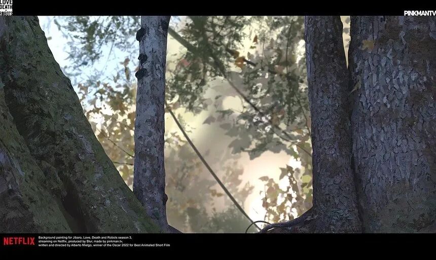 之前口碑回升的《爱死机》第三季当中,Vanya Fedorov继续与导演阿尔贝托合作,同样作为2D背景画家为「吉巴罗」创作了一些环境作品。