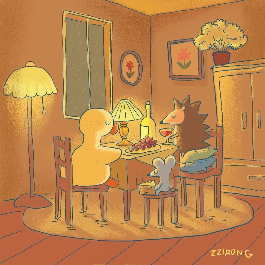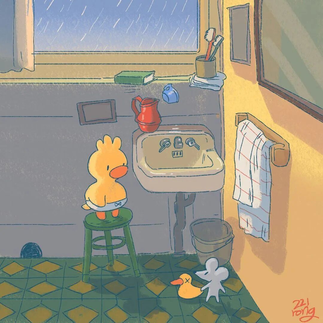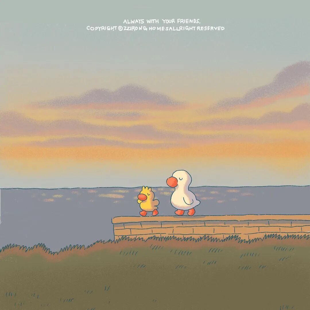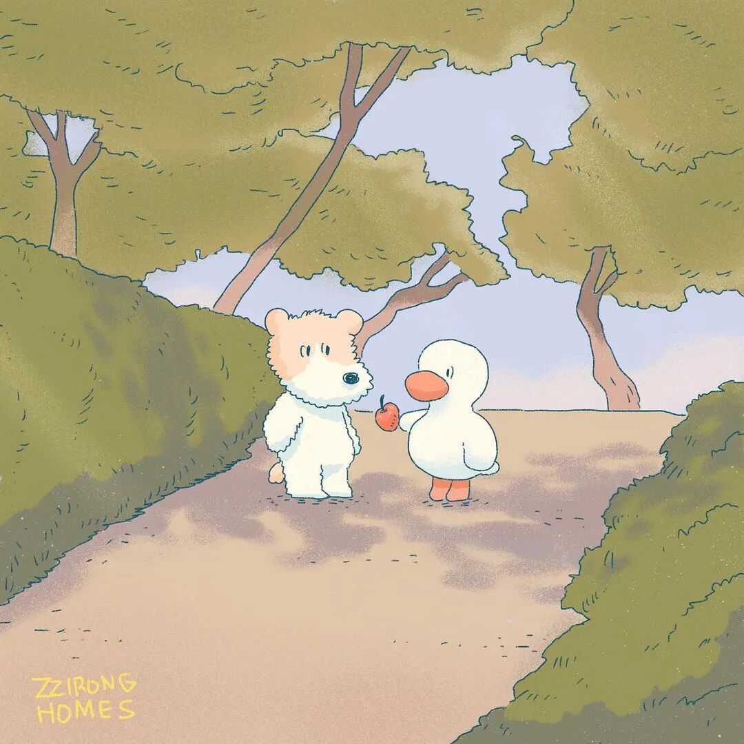 知己二三,足已慰风尘。欣赏韩国插画师@zzirongx.x的趣味插画,看看小鸭子和它朋友的日常~