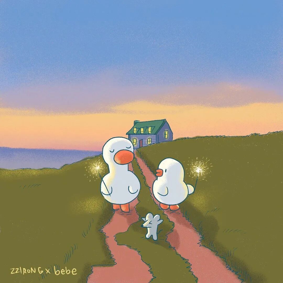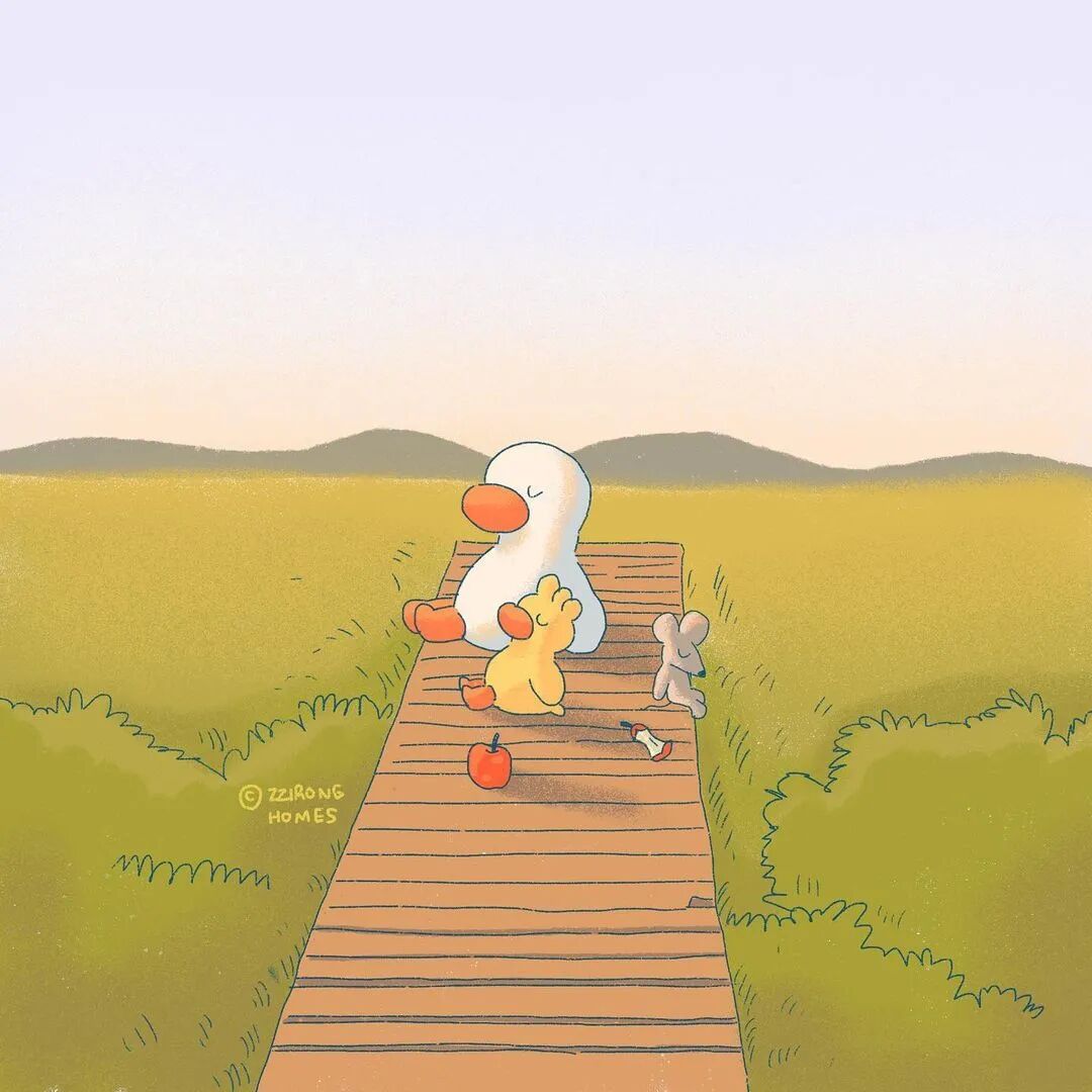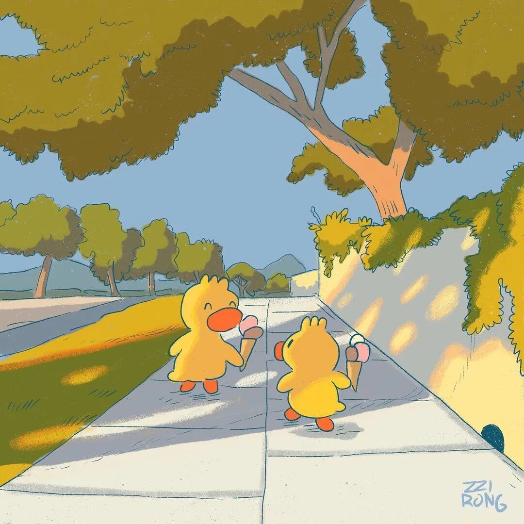 知己二三,足已慰风尘。欣赏韩国插画师@zzirongx.x的趣味插画,看看小鸭子和它朋友的日常~