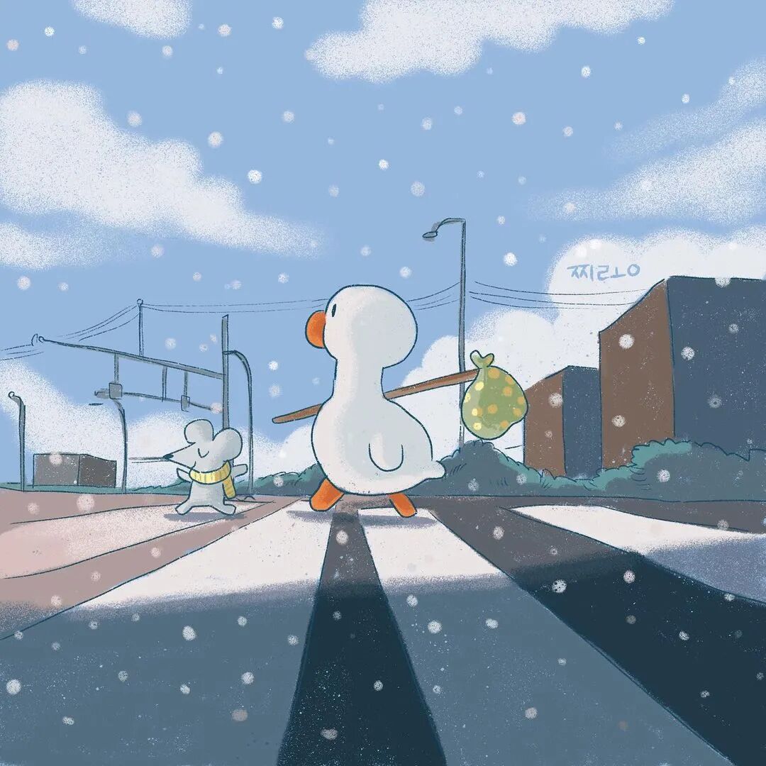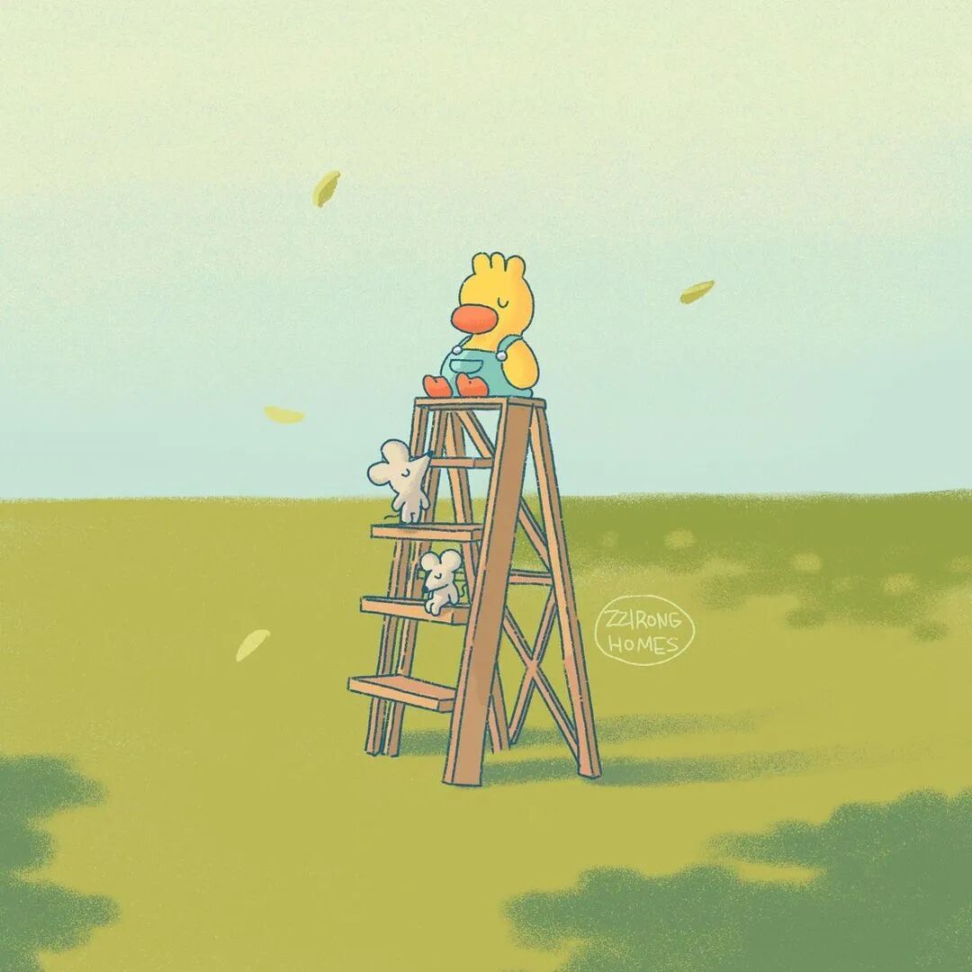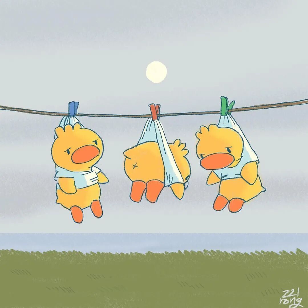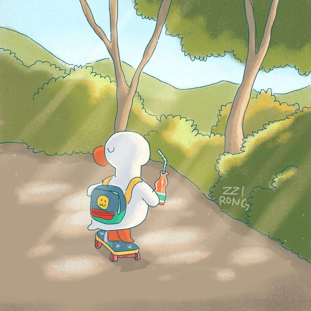知己二三,足已慰风尘。欣赏韩国插画师@zzirongx.x的趣味插画,看看小鸭子和它朋友的日常~