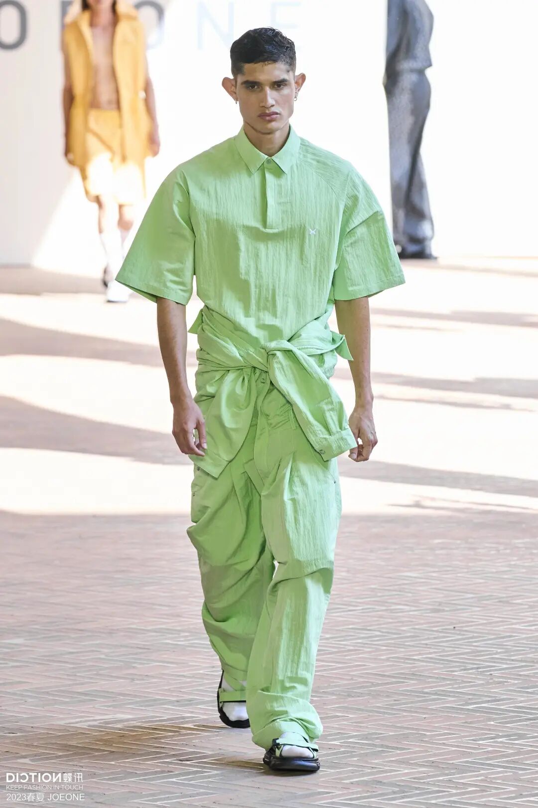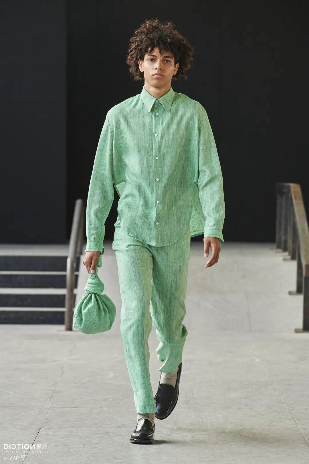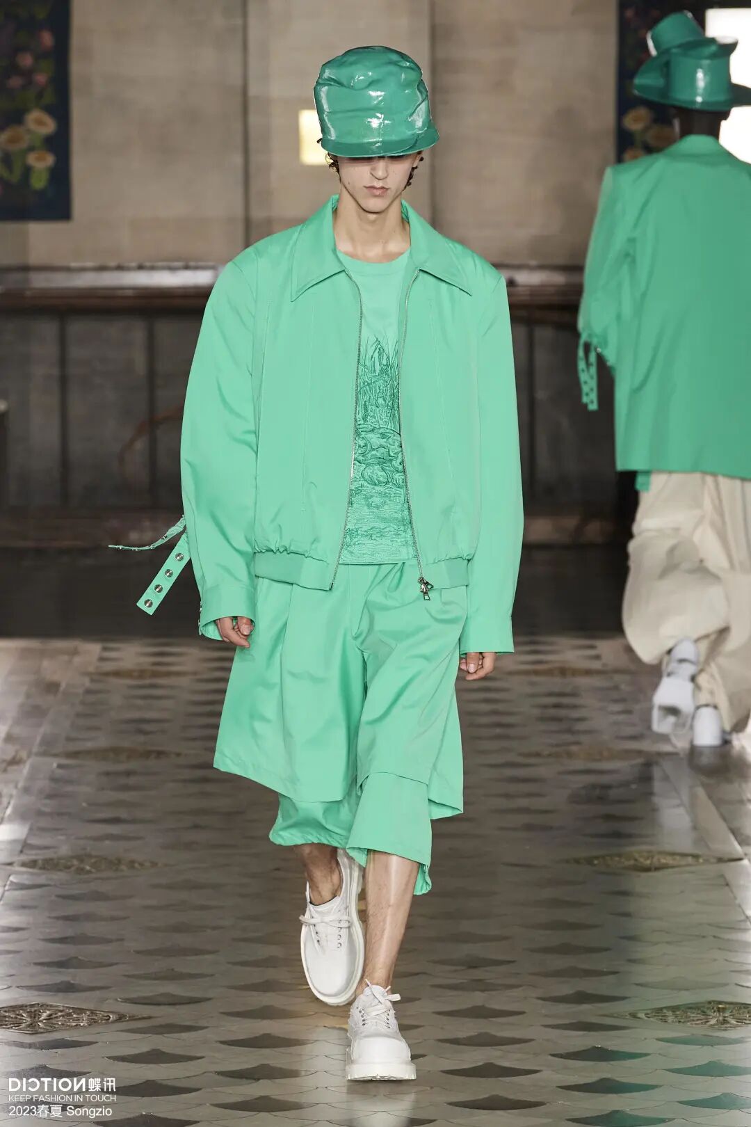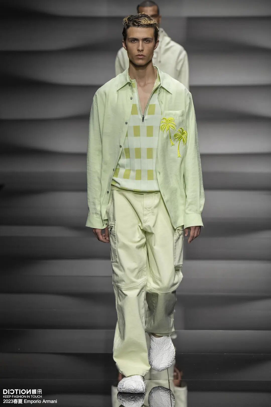 粉质色彩的比例在今季有所递减,仅有青蕉色-14-0434TCX,色感尤其具备跨季特性,受到爆款色彩BV绿的影响,高饱和度的绿色在今季依旧受到不少品牌的拥护,如经典绿-16-6340TCX、岛屿绿-16-6240TCX、中绿色-17-6229TCX、仙人掌绿-18-0130TCX等,以更具备强劲生命力的演绎席卷男装领域。