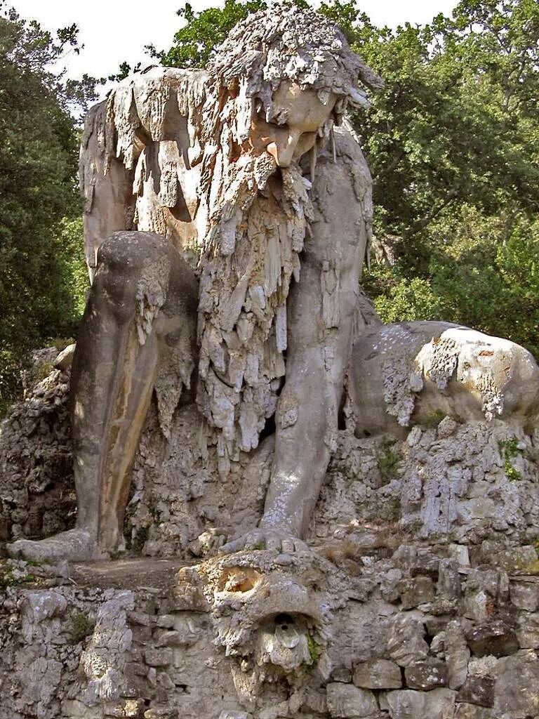 《亚平宁山脉巨人像》超过10米,气势恢弘壮阔,被人们视为这座山的山神。经过5个世纪的日晒雨淋,雕像的身上不再平滑完整,但仍无损它的壮观威严。这座雕像并不是实心的,艺术家在雕像内部留有许多空间,并进行巧妙的运用,让这座雕像的功能更加多元。
