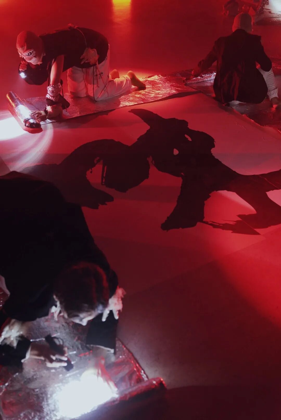 即兴作为街舞独特的表演形式之一,深远地影响了陶心琪的表演创作结构,在艺术家的“亚人”观念下,即兴被艺术家本人的创造权力所掌控,又促使角色不断萌生脱离的断点并激励表演者的自发性。因此矛盾是必然的,在矛盾中又达到总体的平衡,在重复中不断延伸即兴的可能性。陶心琪常常以场面制造解构并重建表演者的肢体身份意识,又迅速化为乌有。