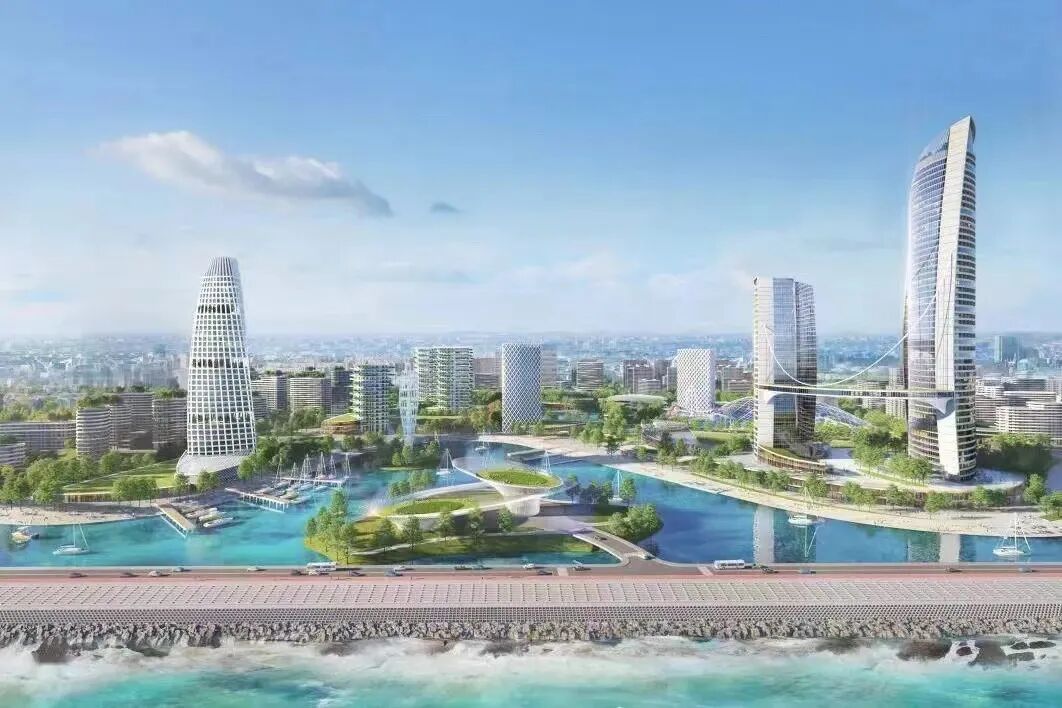 酒店所在的滨海片区,以长达9公里海岸线为链,规划了公共绿地面积58万㎡,水域面积56万㎡,合起来就是一个114万m的滨海超级巨无霸湖景公园,集湖景、海景、公园三位一体,并设有博物馆、海洋馆、剧院及水上运动场等多个主题度假综合体和人工岛屿。