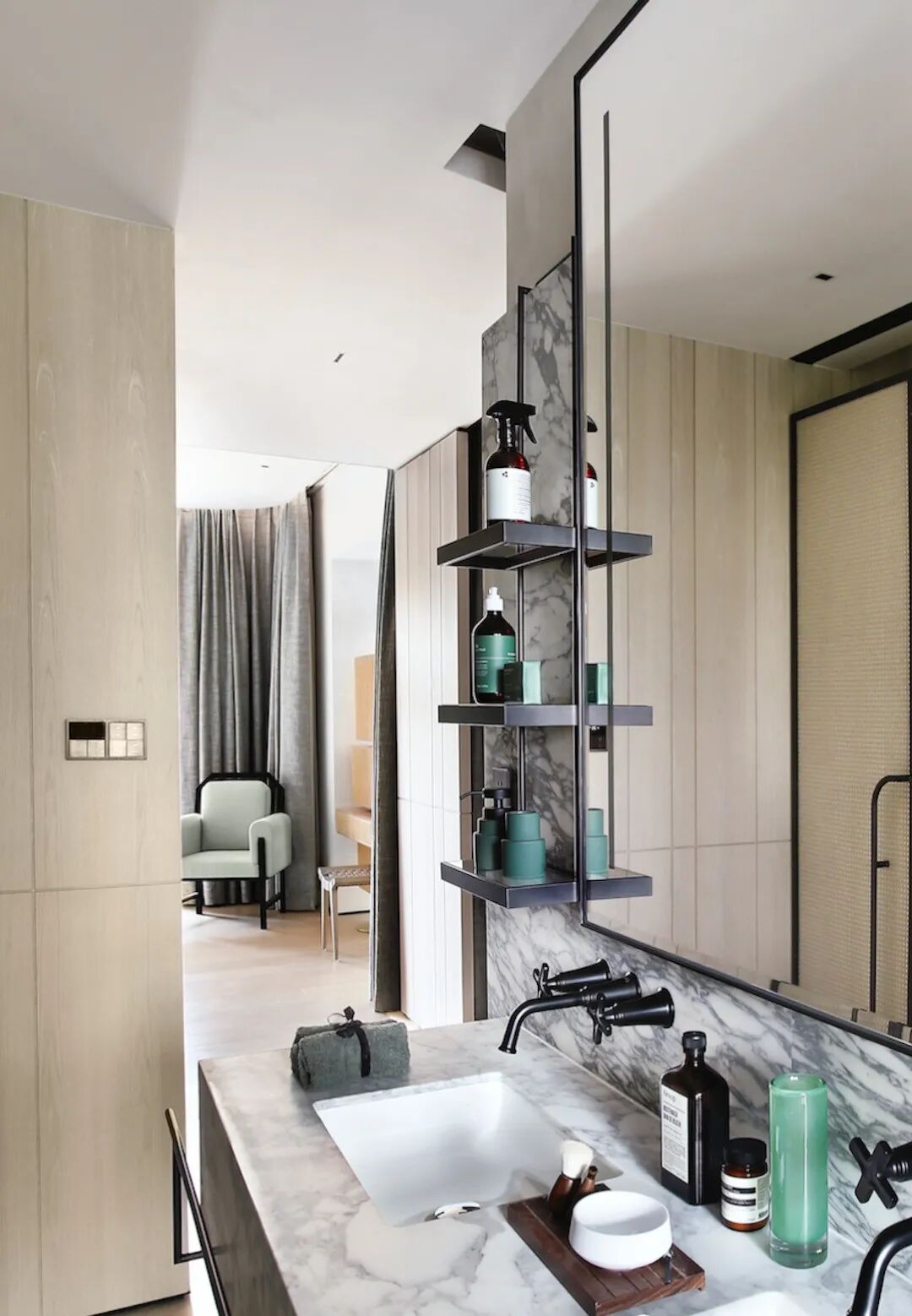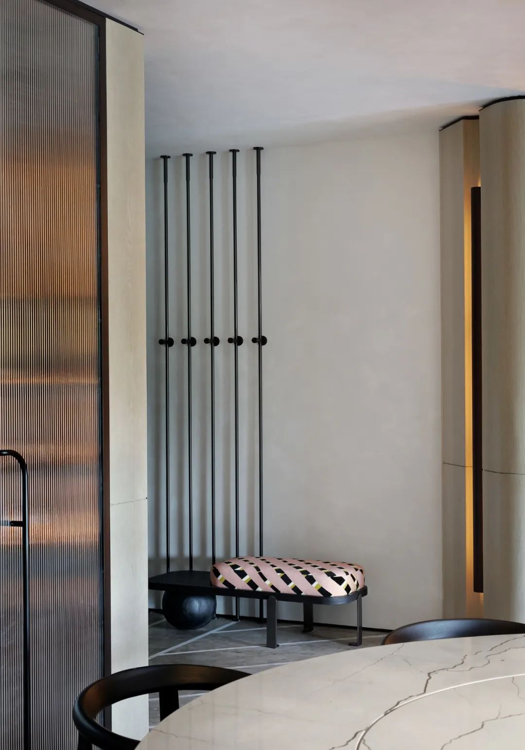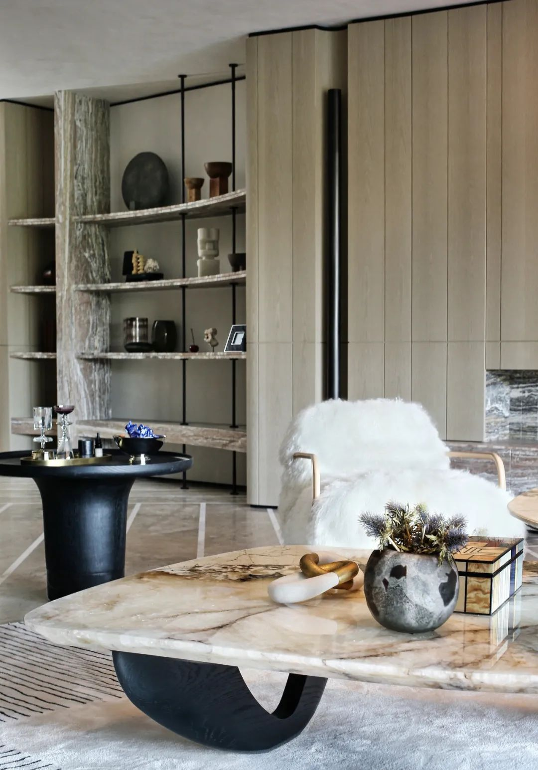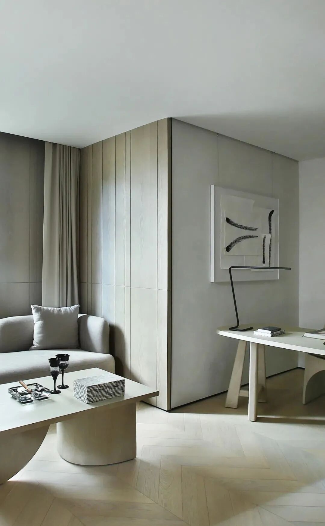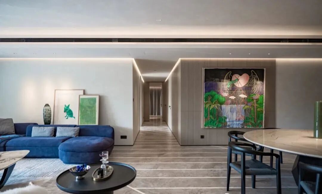 客厅|斜向地坪的交错语言从客餐厅延续下去,既是视线引导,又让空间动线自由自在