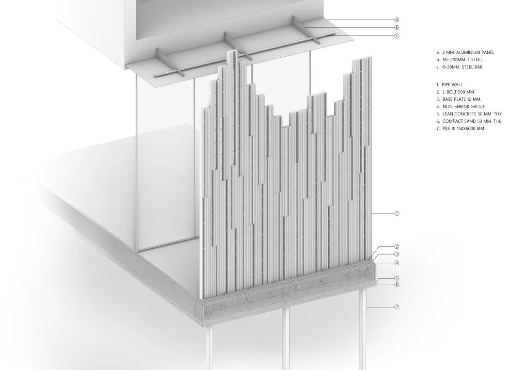 △ 前墙轴侧细节  © HAS design and research