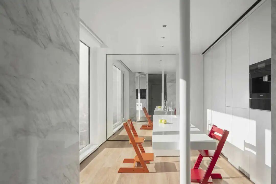 可以看到窗外的晨光与风景,可以看到餐厅老人正在布置餐食,也可以透过玻璃看到孩子在认真写作业,每一个房间你都能感受到家的温暖,你也可以面向白墙,安静的思考...