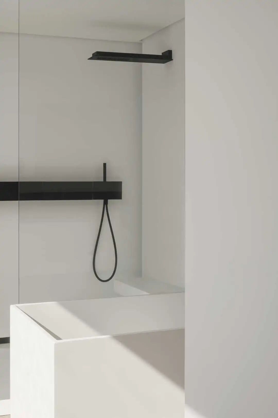 浴缸与淋浴区相互独立,干净卫生。淋浴区隐藏了水管,留出置物台面,真正做到美观实用。