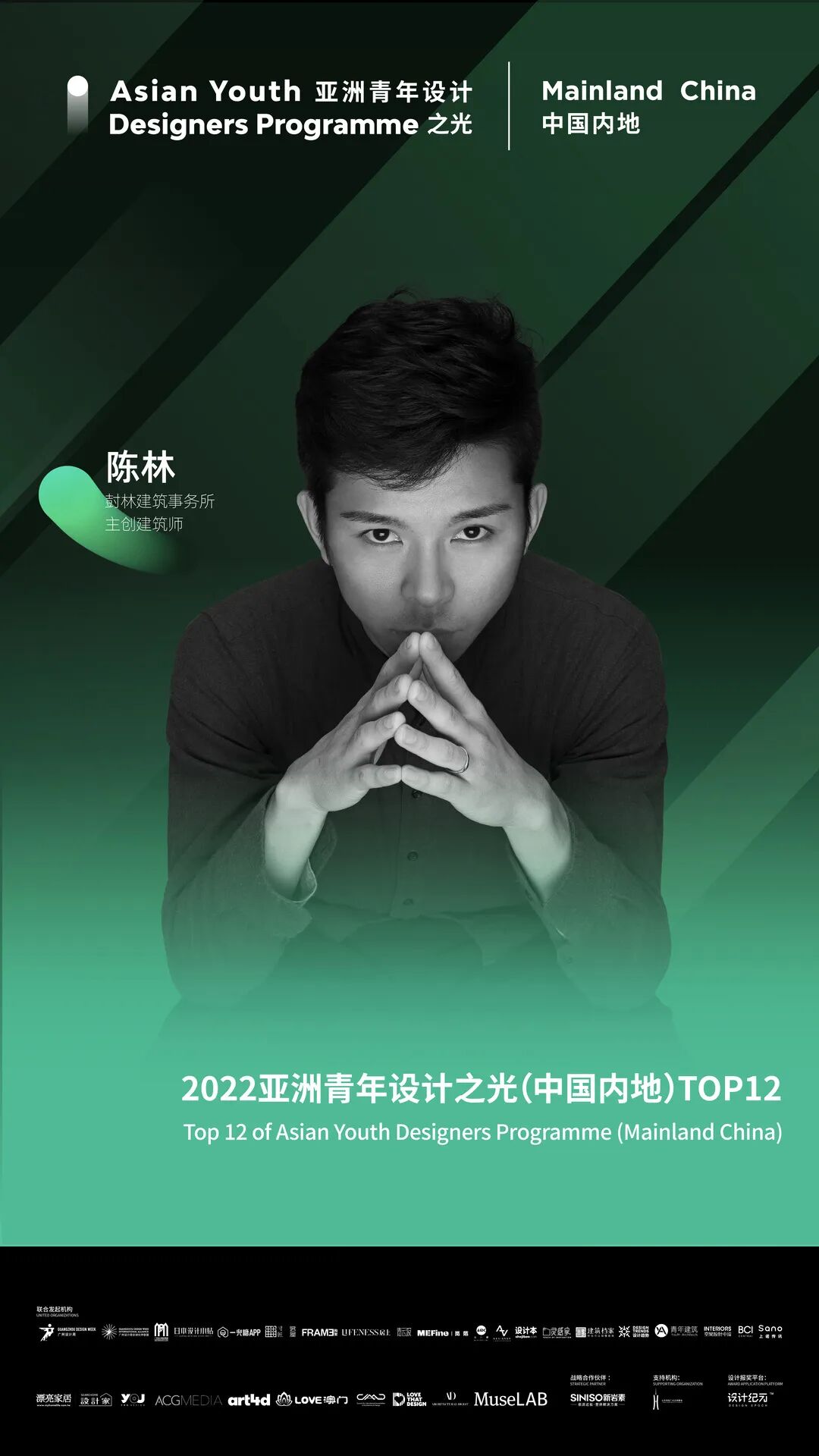 再次衷心祝贺陈林先生获得本年度“亚洲青年设计之光(中国内地)Top12”,并希望陈林先生在设计道路上步履不停,带领青年设计新力量,站上国际的舞台,传递亚洲青年设计价值观。
