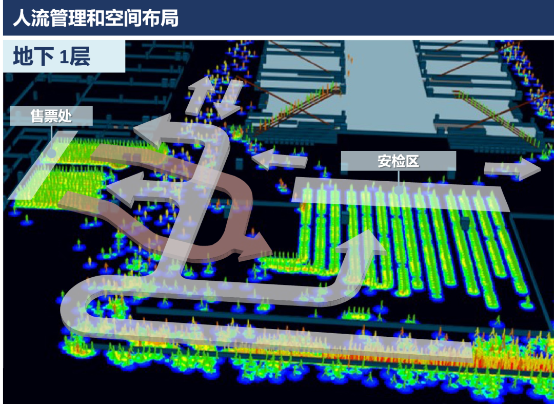奥雅纳利用STEPS软件搭建模型,模拟正常情况下2030年枢纽客流,分析客流运行情况,评价枢纽服务设施设计是否能满足客流需求,并提出了优化建议。