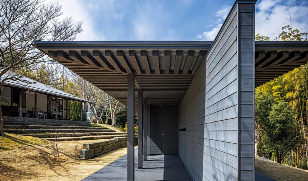这个画廊,从一开始就没有考虑安藤式的混凝土材质,而是选择了深灰色杉木,以期与周围的自然环境和工作室的静谧之态相协调。彼此呼应,却也安静自立。